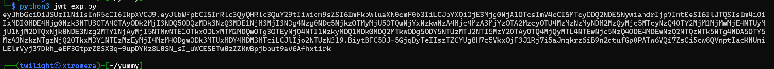 With the information given, we craft a python script that takes the original JWT token from the user we are logged to and change it by injecting the newly created JWT token.