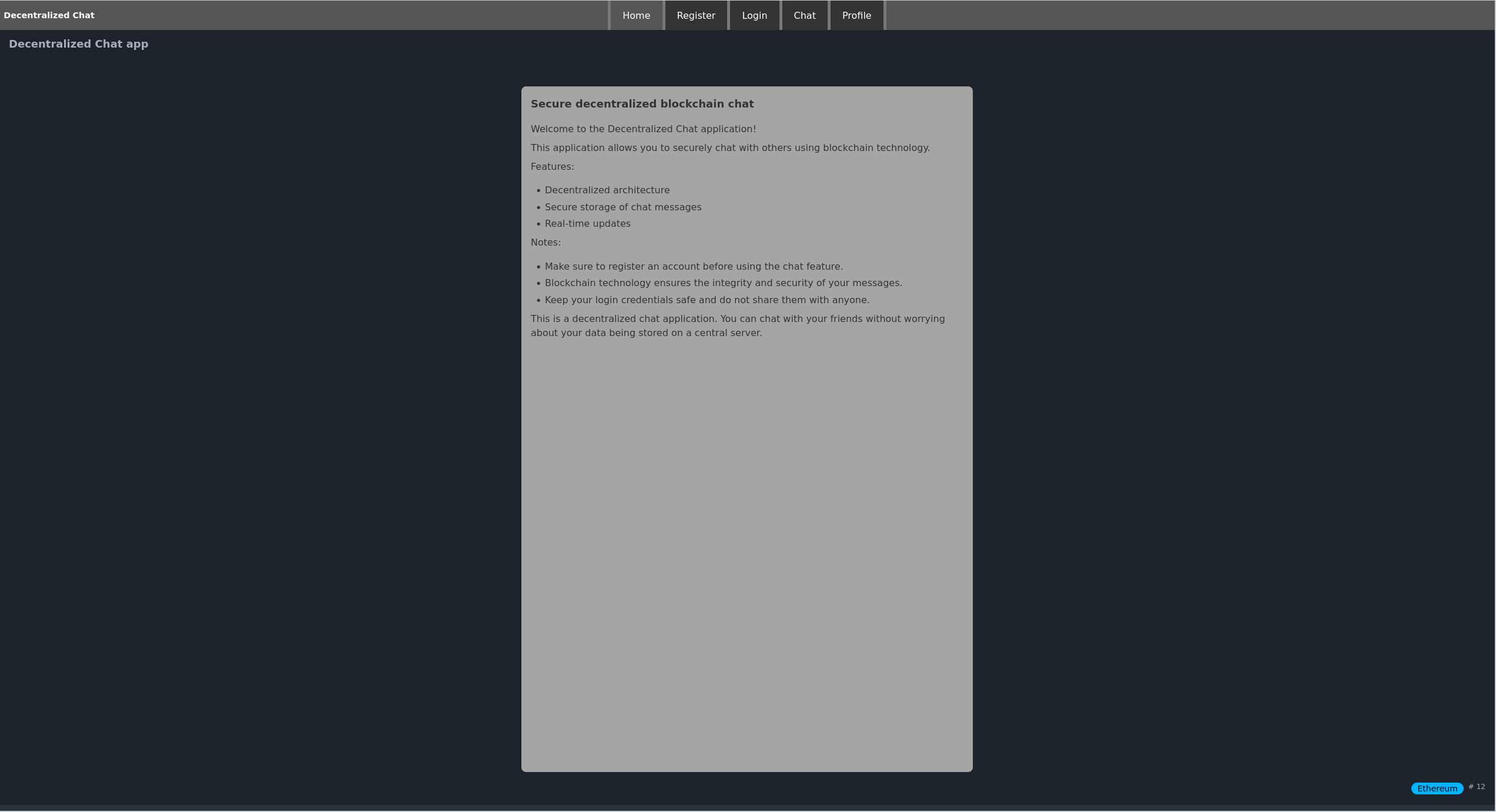 We can see a Decentralized Chat application using blockchain technology. Lets break this down.
